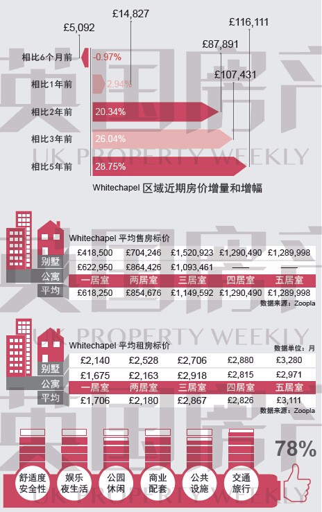 Whitechapel位于伦敦金融城北部边缘地带,和Shoreditch,OldStreet环岛等站点迅速崛起,成为伦敦科技创业园区的核心之一。在未来5到10年间,该地区将成为伦敦市中心东北部为汇聚包括银行家、艺术家和科技精英人士的新城。