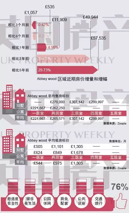 Abbey wood位于泰晤士河南岸的伦敦东四区,因LesnesAbbey遗迹周围的林地而得名。目前该地区的大部分住宅都还是上个世纪五、六十年代建设的。2012年8月,Development Securities PLC宣布了一项投资8500万英镑的CrossQuarter计划,将对面积达10英亩的废弃工业用地进行改造。住宅慈善结构Peabody向一个全新的garden suburb项目投资2000万英镑,将在泰晤士河沿岸三英里的水畔地带建设新建住宅,并与即将贯通的横贯城铁车站相连接。此外,SouthmereVillage的重建工程也已启动,将为该地区提供296套住宅以及一间图书馆,商铺以及社区广场。