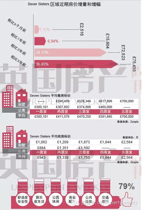 Seven sisters站位于北伦敦的Haringey区,为通勤3区,坐落于伦敦地铁Victoria线上。Haringey区内公园及开放空间约占地600公顷,主要包括Finsbury Park, Alexandra Park,Highgate Wood, Coldfall Wood及Lee Valley Park。该地区教育资源也较为丰富,共有63所小学,10所初中,1所城市学院,4所特殊学校及1所学生服务中心。