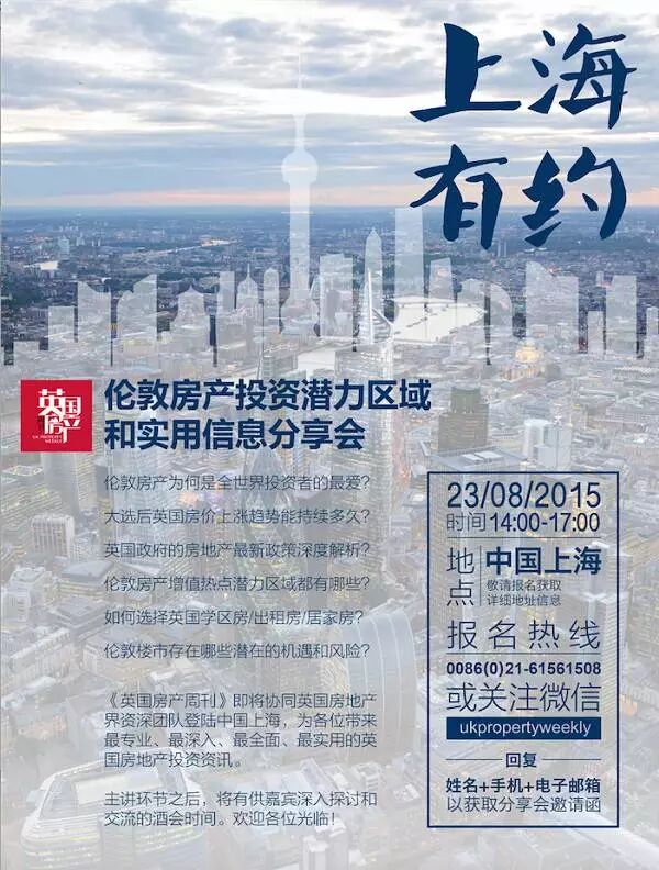 或关注微信:ukpropertyweekly 然后回复:“姓名+手机号码+电子邮箱”