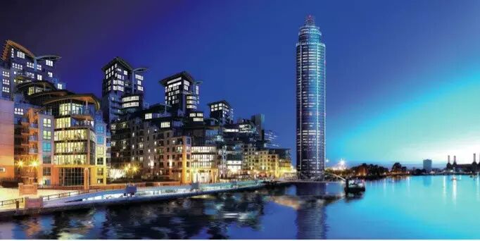 St.George Wharf是位于伦敦泰晤士河以南,紧邻Vauxhall Bridge的一个混合用途项目。占地面积93,000平方米,由超过1,100套公寓,写字楼商业以及餐饮组成。