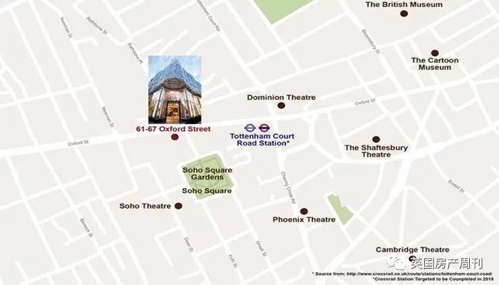 该项目属商用混合物业,坐落于伦敦市中心的牛津街,紧邻 Tottenham Court Road、建设中伊丽莎白线城铁站及OxfordCircus地铁站。该物业于2015年落成,总面积约55,162平方英尺,设有地库、地下及地上6个楼层,提供零售、写字楼及住宅单位。