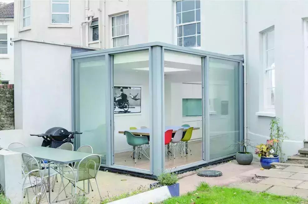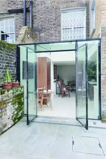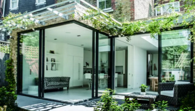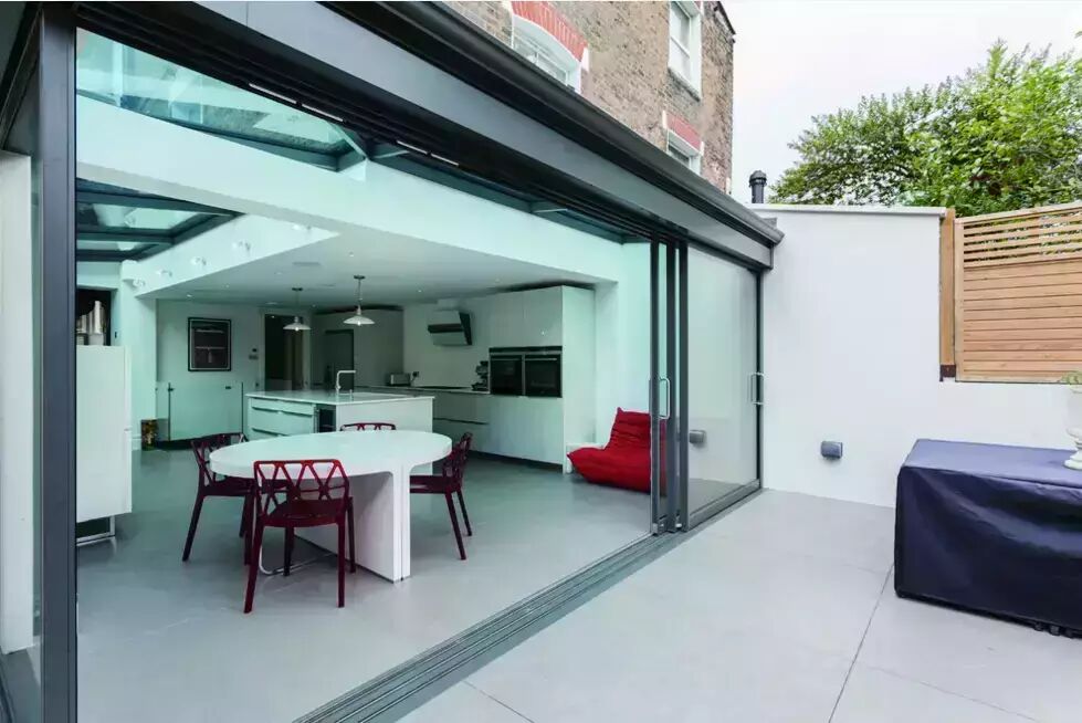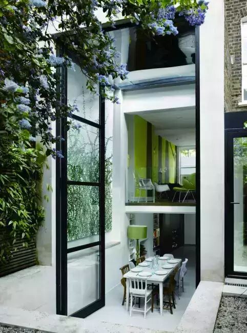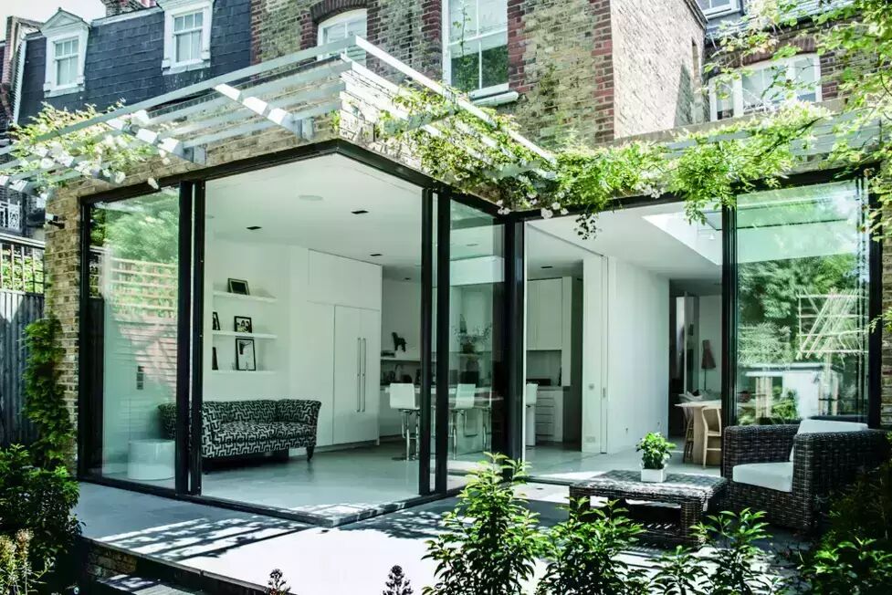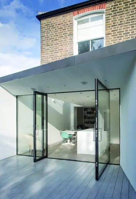 虽然很多业主和设计师都渴望将功能性与美观结合到一起,但是折叠门却是实际生活中最常应用的。它们为阳光房赋予了很大的扩展性,但是也存在不少缺点。通常来说,折叠门比较沉重,而且当折叠门关闭时,每扇玻璃周围的边框会影响视觉效果,当折叠门打开时,需要堆叠到一侧。